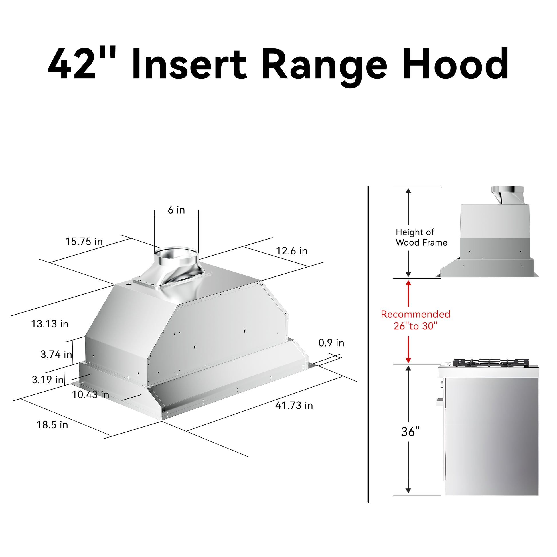 900 CFM Convertible Insert Range Hood with Remote,Touch Control LCD,Long-term Warranty in Stainless Steel