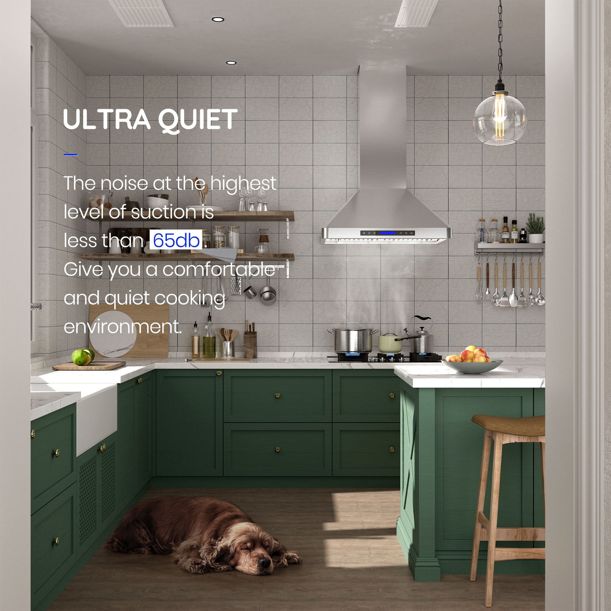 900 CFM Convertible Wall Mount Range Hood with Remote,Touch Control LCD,Long-term Warranty in Stainless Steel