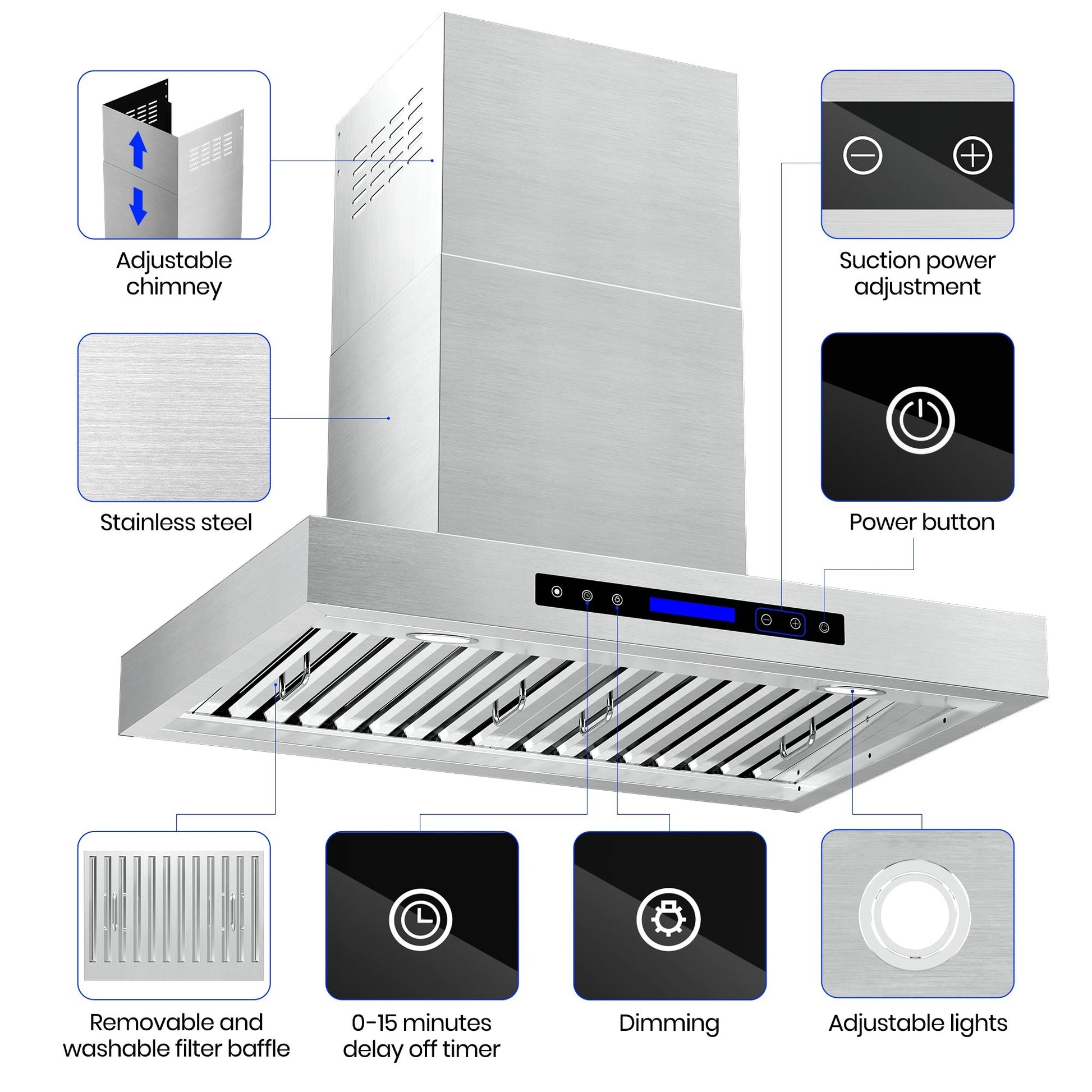 900 CFM Wall Mount Range Hood with Remote,Touch Control LCD,Low Noise,Long-term Warranty in Stainless Steel