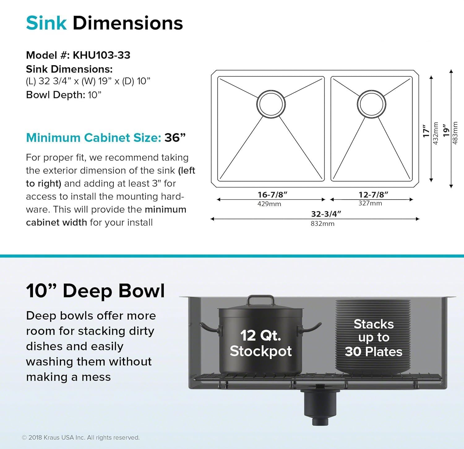 Paredi KHU103-33 Standart Pro 33 -inch Undermount 60/40 Double Bowl 16 Gauge Stainless Steel Kitchen Sink