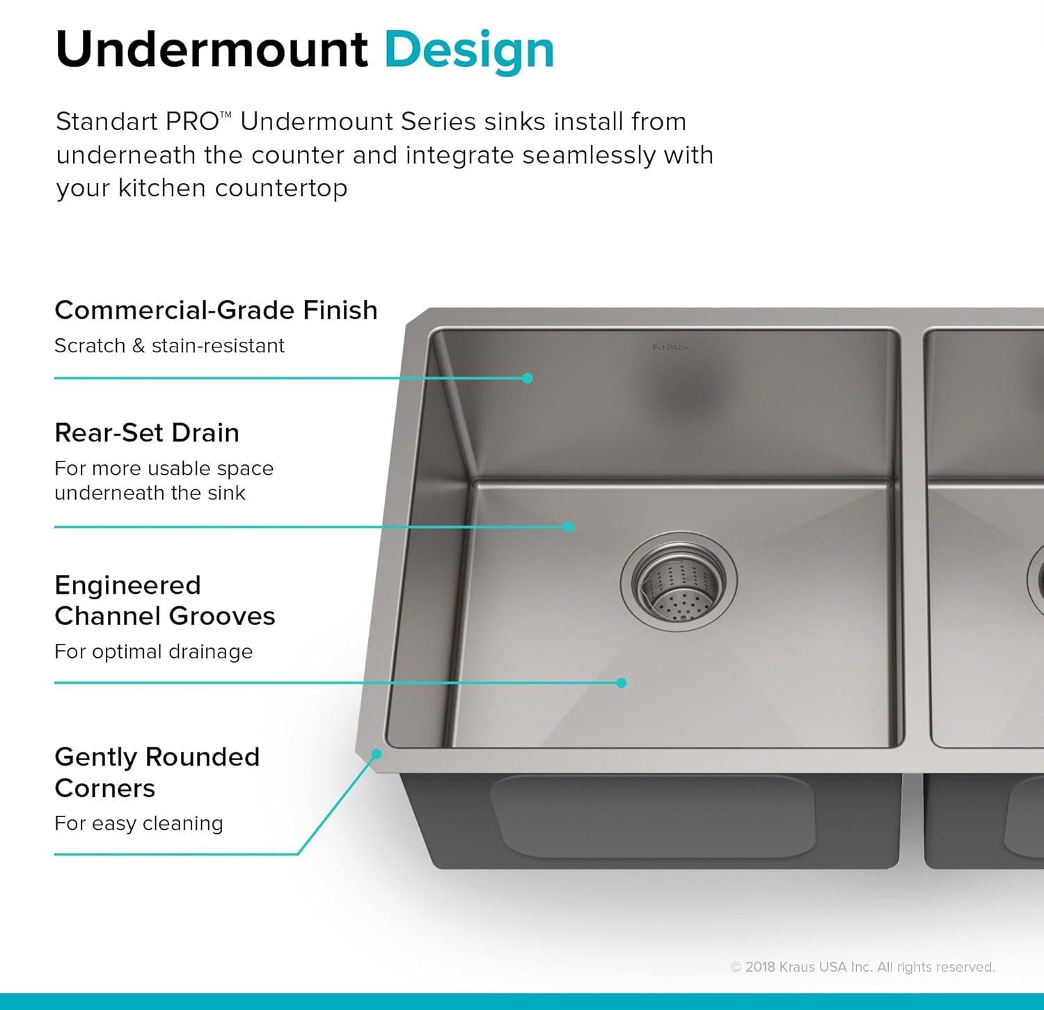 - UNDERMOUNT SINK INSTALLATION creates a seamless transition from sink to countertop with no exposed mounting deck to trap debris – Simplifies cleanup by letting you wipe water and crumbs right into the sink