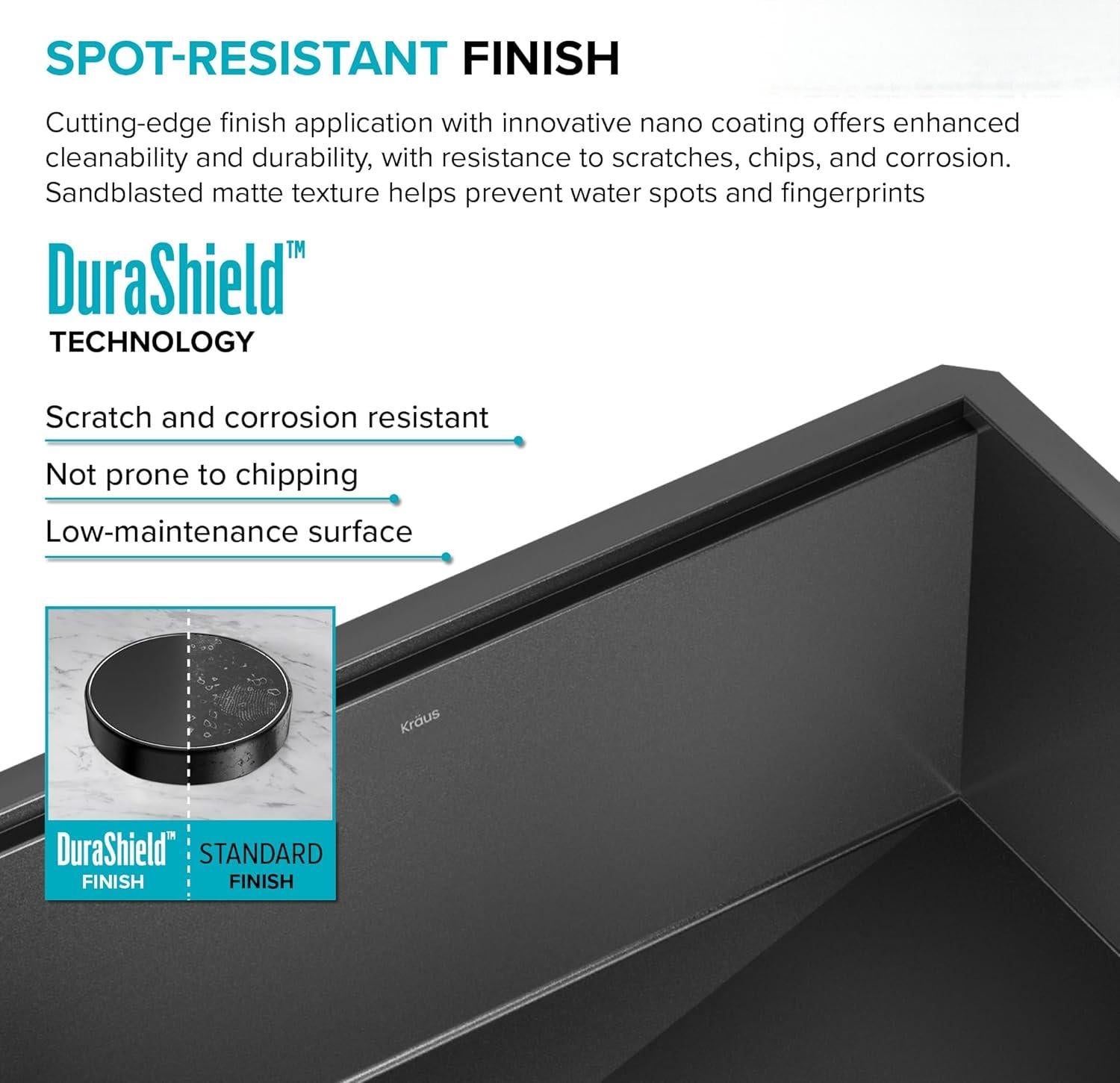- SPOT RESISTANT with DURASHIELD TECHNOLOGY: Innovative PVD finish with nano coating offers enhanced durability with resistance to scratches, chips, and corrosion – Sandblasted MATTE TEXTURE helps prevent water spots and fingerprints – HEAVY-DUTY TRU16 GAUGE STAINLESS STEEL for superior resistance to dents and damage