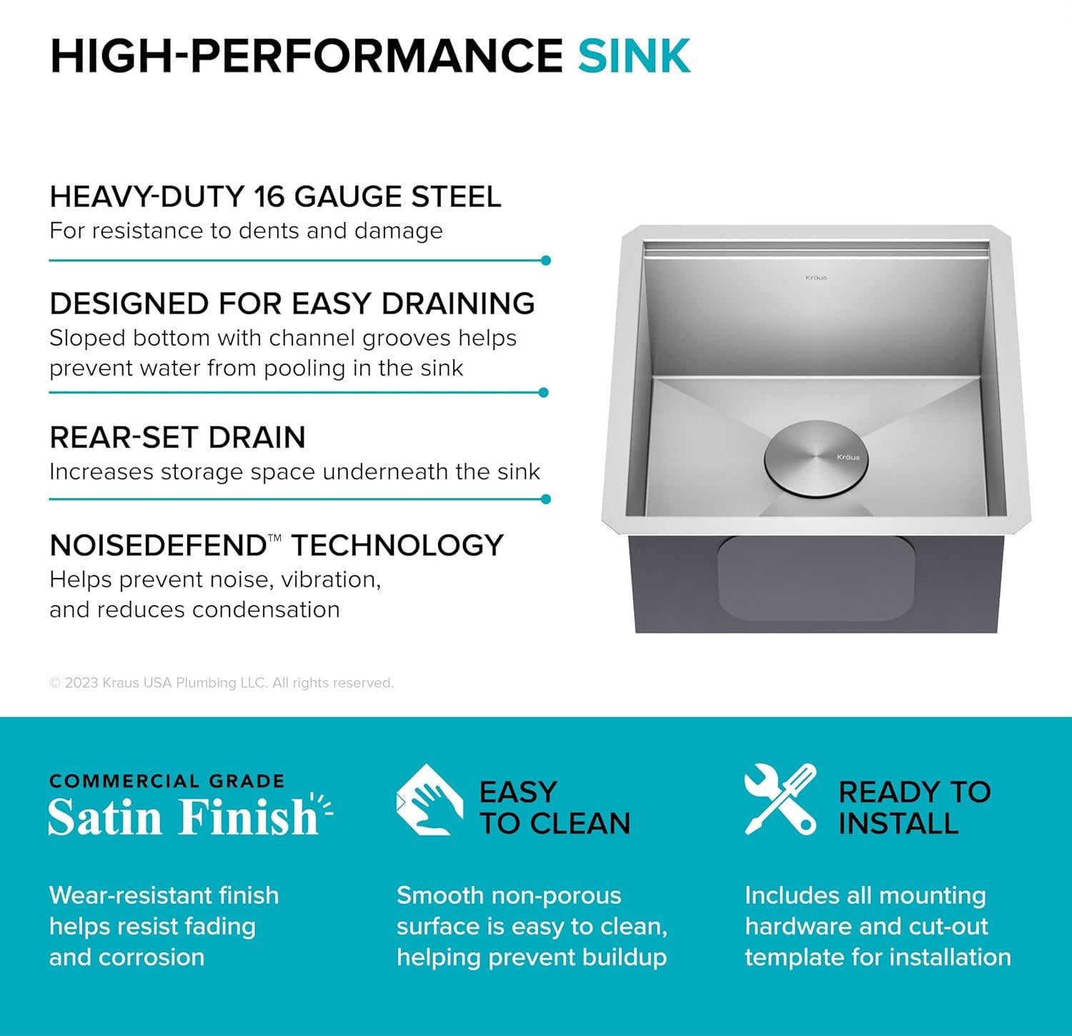 - HEAVY-DUTY 16 GAUGE SINK: Designed for lasting durability, high-performance TRU16 gauge stainless steel sink stands up to everyday use with great resistance to corrosion, dents, and damage