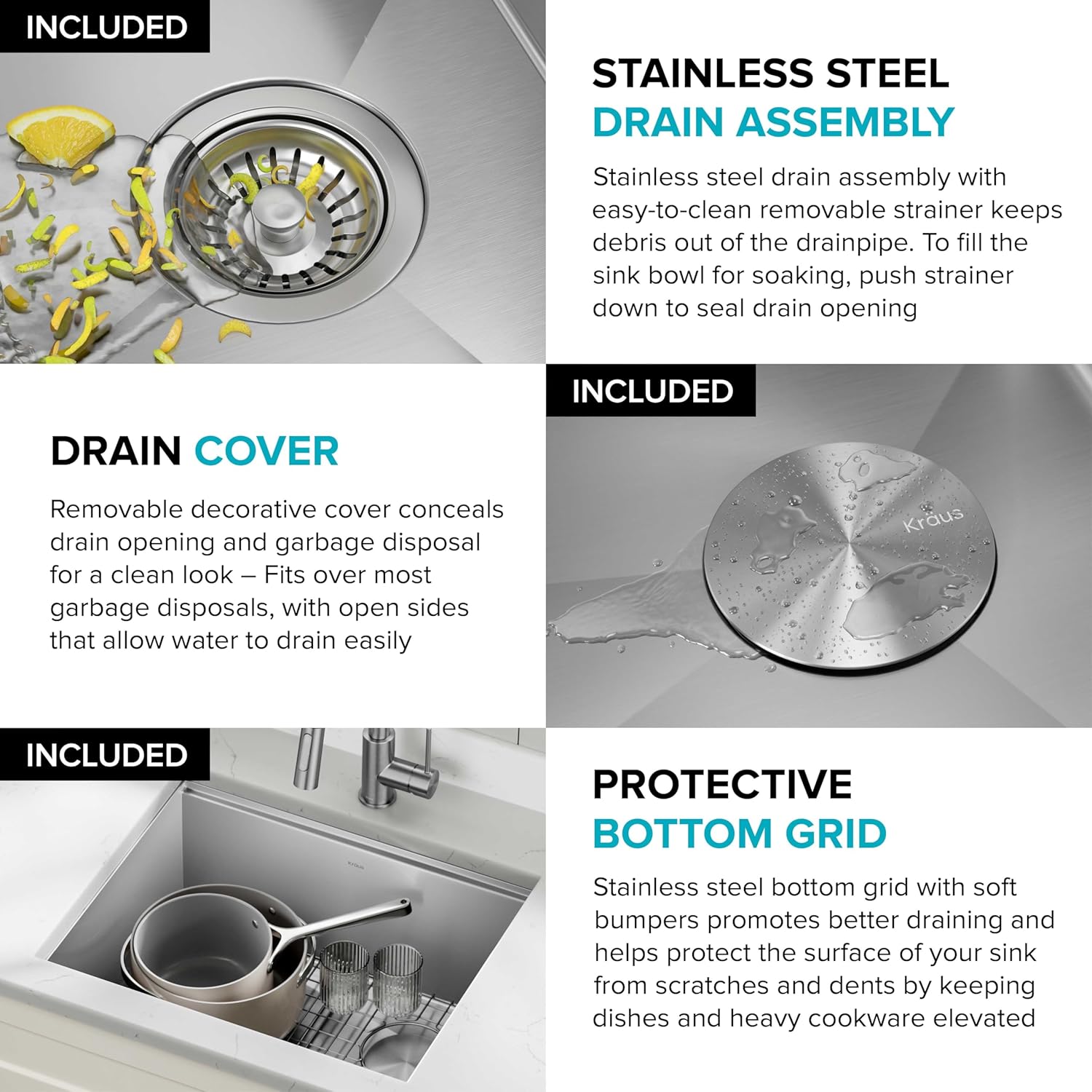 - KIT INCLUDES: Sink for kitchen, cutting board, roll-up dish rack, protective bottom grid, drain assembly with cover, hardware, template